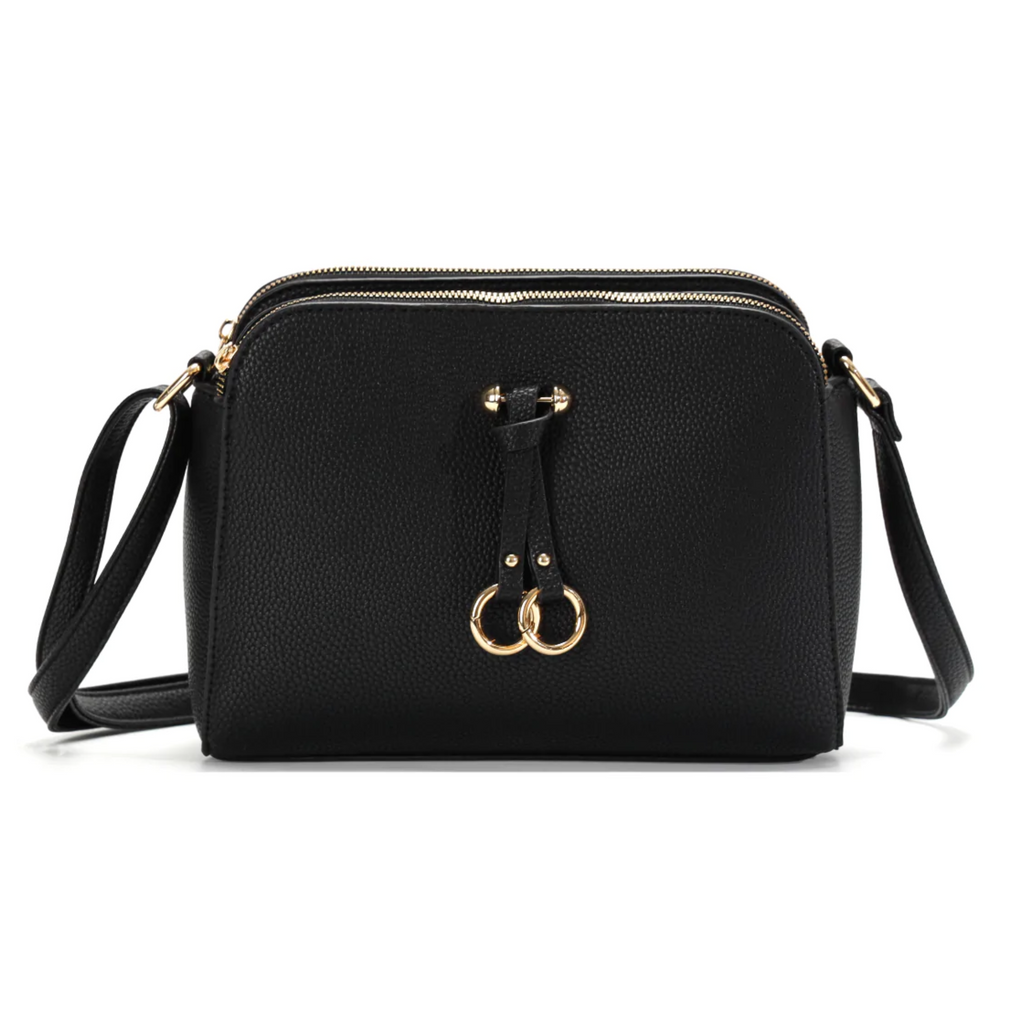 DIMENSIONS: 26x 8 x 20centimetres. Zipper closure and flap bag. Medium bag, with enough capacity for a long wallet, phone and your daily belongings.